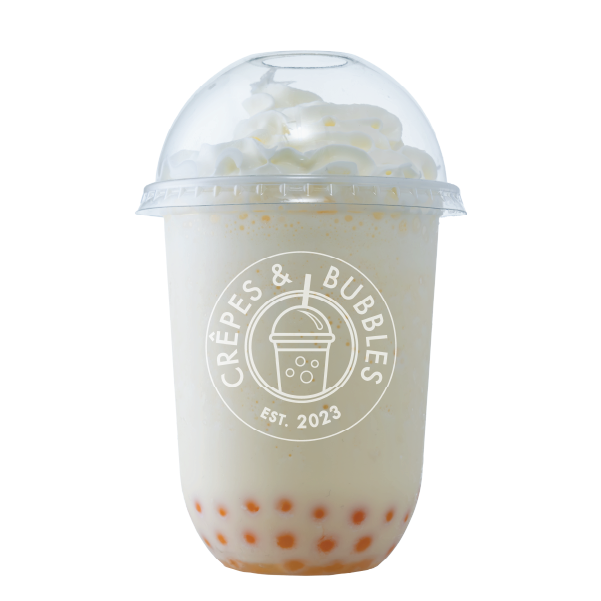 A refreshing tropical frappé blending sweet mango and tangy passion fruit popping bubbles, topped with whipped cream for a creamy and fruity treat.