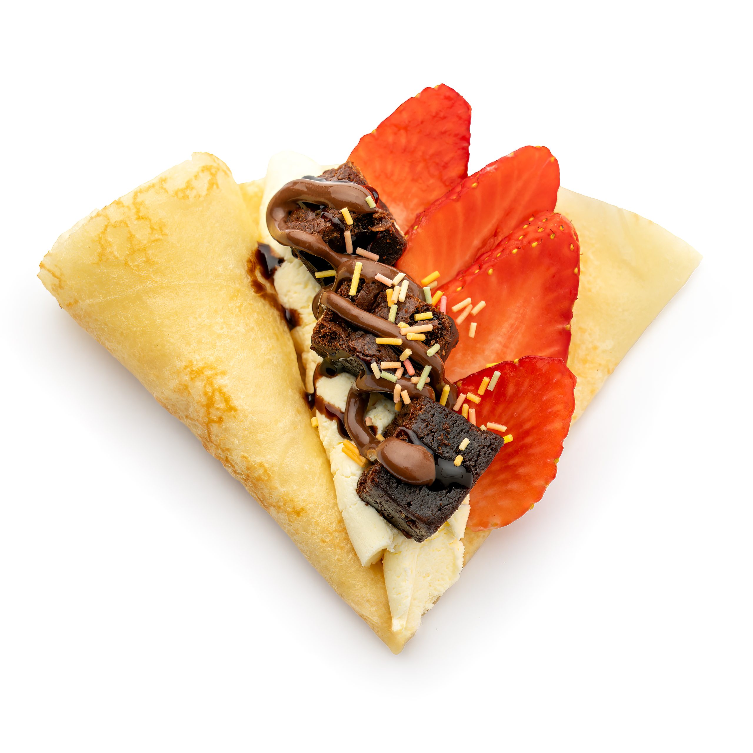 Chocolate brownies with Nutella, cream and chocolate sauce, finished with fresh strawberries. A deep chocolate indulgence for serious dessert lovers.