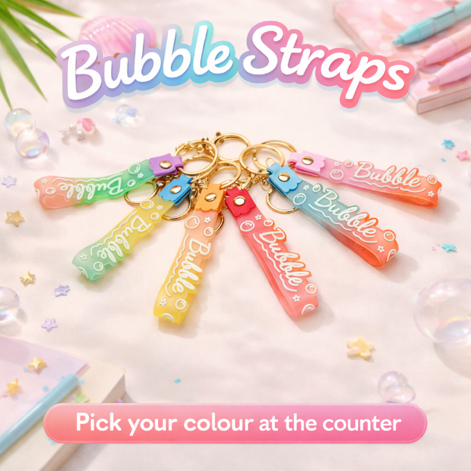 Each strap features fun bubble details and vibrant colours to match your style.
