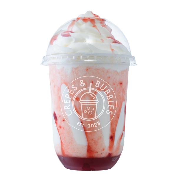 A refreshing iced blend of sweet strawberries and juicy peaches, finished with whipped cream for a smooth and fruity indulgence.