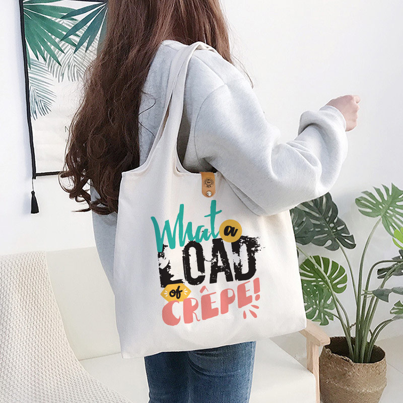 “What a Load of Crêpe!” Organic Cotton Tote Bag Make a statement with this fun and eye-catching tote, featuring an original design that brings a playful twist to everyday style. Crafted from 100% organic cotton, this bag is not only durable and practical but also an eco-conscious choice for daily use.